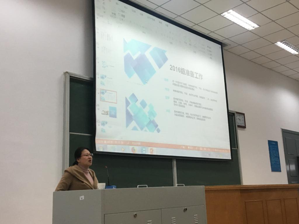 辅导员张春霞老师最后介绍2015级目前就业、留学、保研、考研情况,提醒2016级同学们要及早确定方向,及早开始准备。并继续提出辅导员午餐邀请,邀请对学习工作、未来规划有困惑的同学与辅导员共进午餐,为同学们答疑解惑。