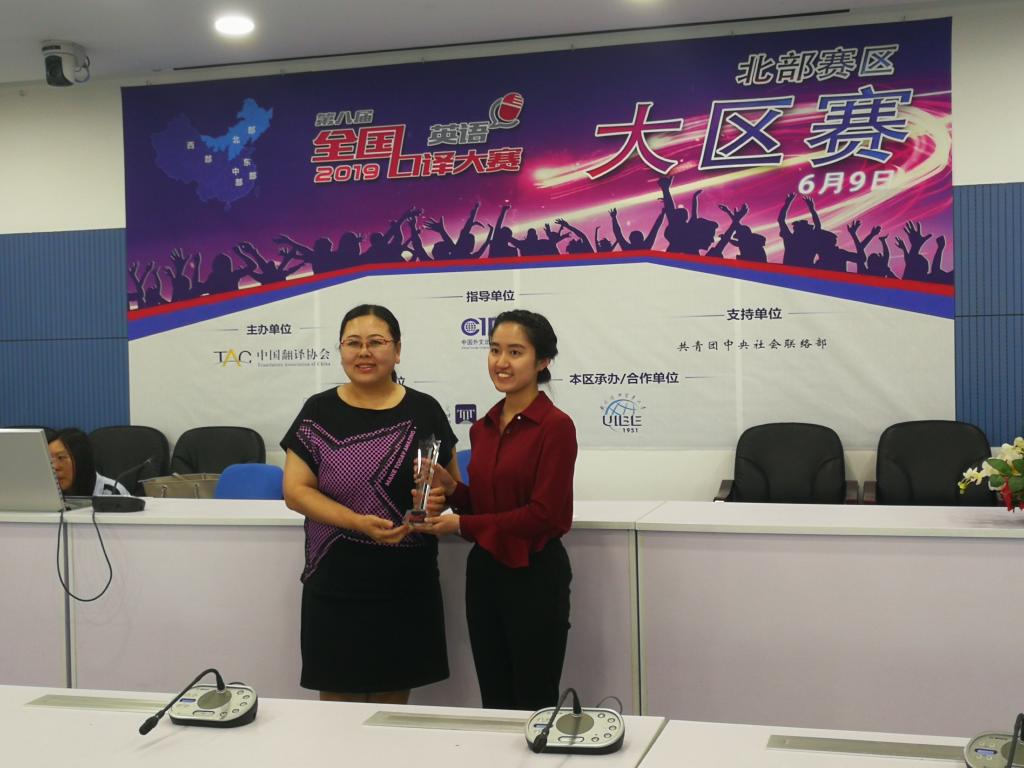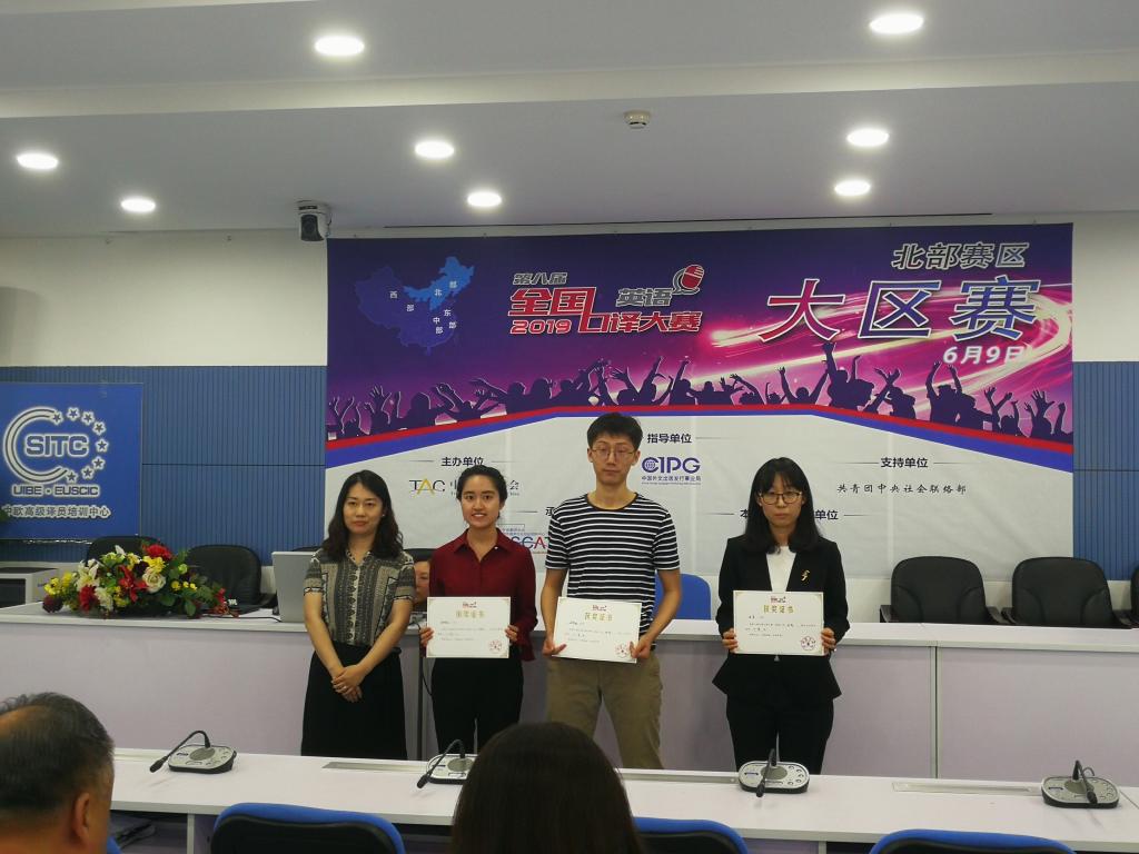 201969日,第八届全国口译大赛北部大区赛在对外经济贸易大学落下帷幕。Beat365唯一官方网站学生在大赛中表现优异。其中,金羽菲同学获一等奖,潘婷立、尹佩璇、侯玉颖同学获二等奖,谢怡凡同学获三等奖,赵世明同学获优秀奖,王颖冲老师获优秀指导教师奖。