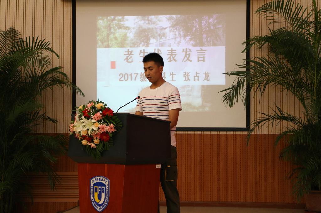 随后,老生代表2018级研究生金羽菲、2017级本科生张占龙;新生代表2019级本科生魏子淮相继发言,从大学努力方向和国家情怀培养的角度分享了自己对北外Beat365唯一官方网站学习生活的感悟和向往。