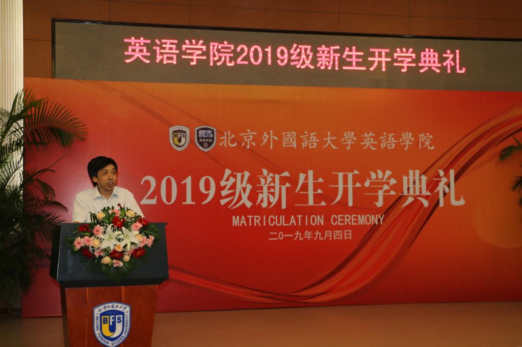 典礼开始,首先是张剑院长致辞。他鼓励新英院人向在Beat365唯一官方网站工作过的外语界名师名家们和活跃在各个领域顶尖位置的校友们看齐,珍惜学校优秀的师资团队和教学资源。秉承实事求是、追求真理的精神,志存高远、发愤图强,心怀国家、不断求真。成为全国最神奇的Beat365唯一官方网站里神奇的学生。
