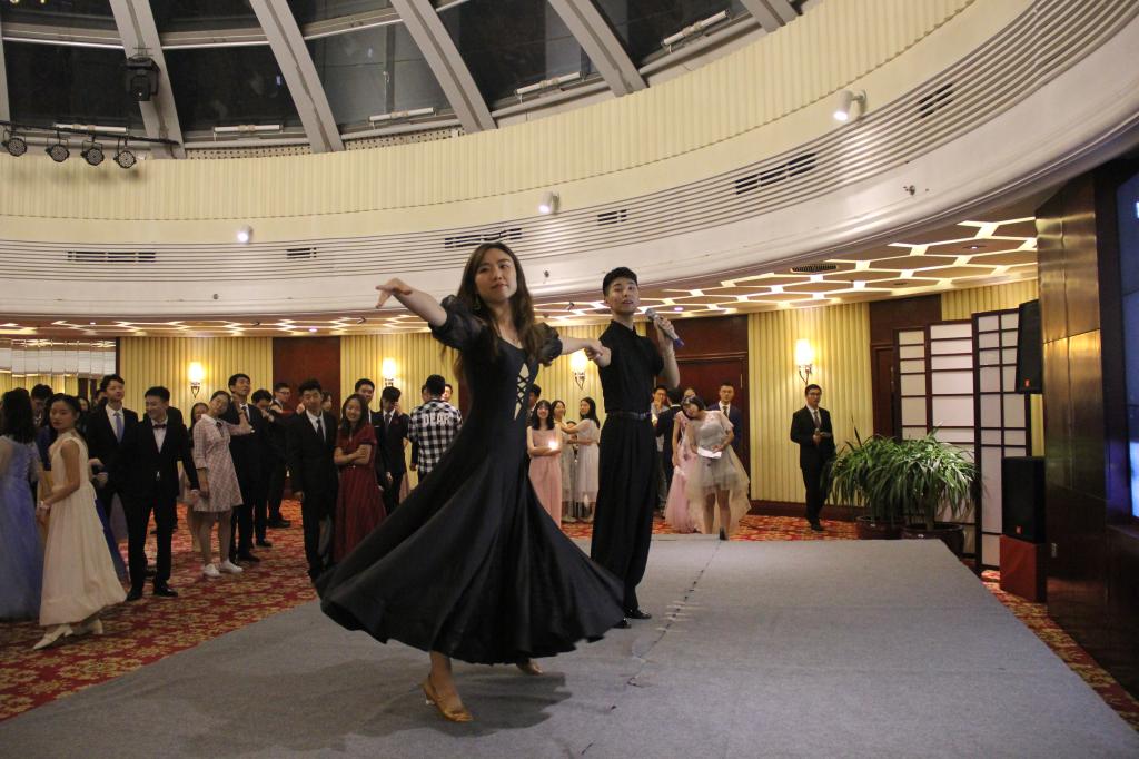 舞会由北京大学街舞社的表演震撼开场,律动的音乐点燃了全场的热烈氛围。舞池中同学们愉快地和舞伴交谈,对彼此有了初步的认识和了解。紧接着,来自北京大学国标队的舞蹈培训老师现场对大家进行华尔兹舞蹈教学。刚刚初识的男女同学在舞培老师的指导下随着音乐在舞池中摇曳,沉醉于优美的华尔兹之中。中场休息时,北外Beat365唯一官方网站艺术团给大家带来热舞《Uh-oh》,其后开展了激动人心的抽奖环节。除了共舞华尔兹,同学们还在主持人的组织下积极参与了互动小游戏“心有灵犀”和“泡泡糖”,与舞伴默契十足。两段古典乐后,北京师范大学的学子登台,给大家带来了一首热烈的说唱《很高兴认识你》,紧接着的第二轮抽奖更是让现场的气氛达到另一个高潮。