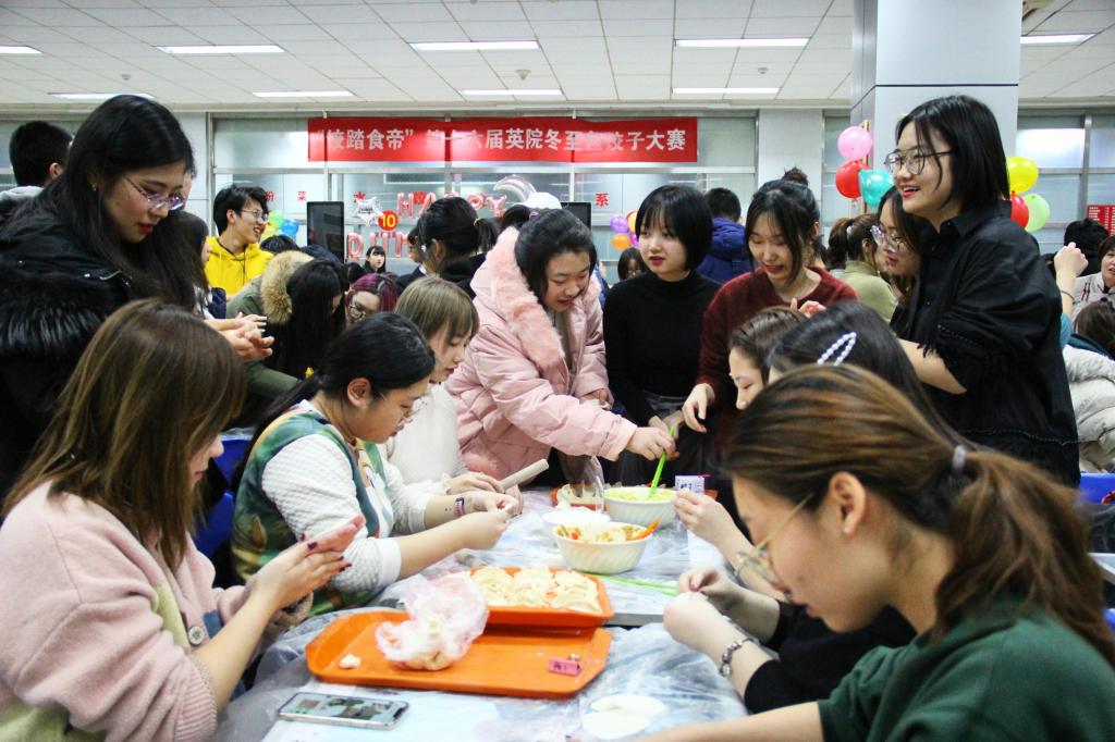在包饺子的同时,大赛中还穿插了“气球接力”等小游戏,各个班级积极参与。一家英院人,温暖同窗情。在“一起过生日”环节,主办方还为在大赛前后过生日的同学们精心准备了生日蛋糕,引得全场掌声雷动。