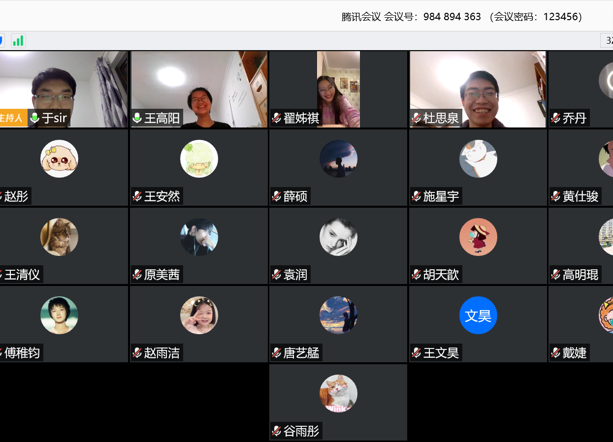 首先,于老师询问了同学们疫情期间在家学习生活的情况,询问大家是否有学习及其他方面的困难,及时提出来以便学院帮助解决协调。鼓励大家不要因疫情而出现松懈,反而更要提高学习的主动性、自觉性,要对自己严格要求。在线学习时,要特别加强线下与老师的沟通交流,对学习中的困惑与疑难问题,及时向老师请教。