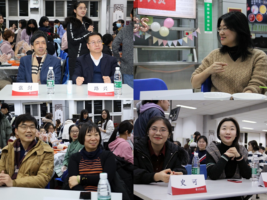 在生活权益部的精心装饰下,食堂二层处处洋溢着节日的气氛。夜色降临,参赛各班入场就位,嘉宾评委相继就坐。活动伊始,张剑院长亲切致辞,现场反响热烈。在主持人宣布比赛流程、游戏规则及奖项设置后,伴随着歌声与欢笑声,包饺子大赛正式拉开帷幕。