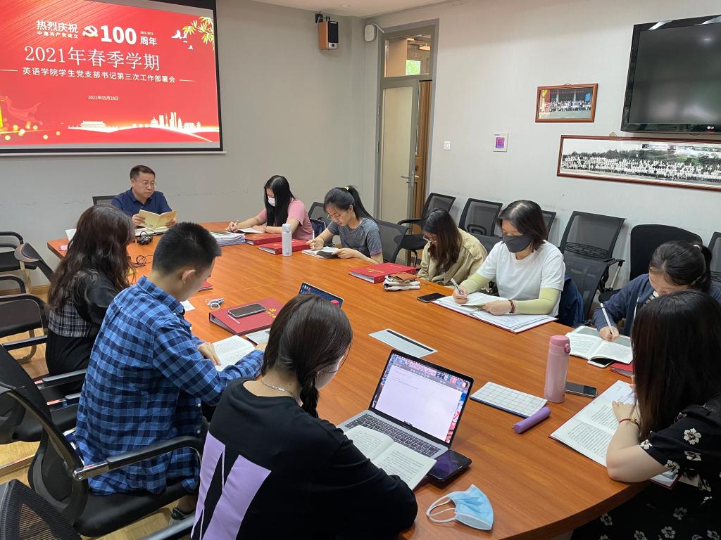 2021年5月28日下午,Beat365唯一官方网站党总支在111会议室召开《中国共产党普通高等学校基层组织工作条例》 (以下简称《条例》) 学习会暨本学期第三次学生党支部工作例会。会议由党总支书记路兴主持,辅导员宗辰及各学生党支部书记参加会议。