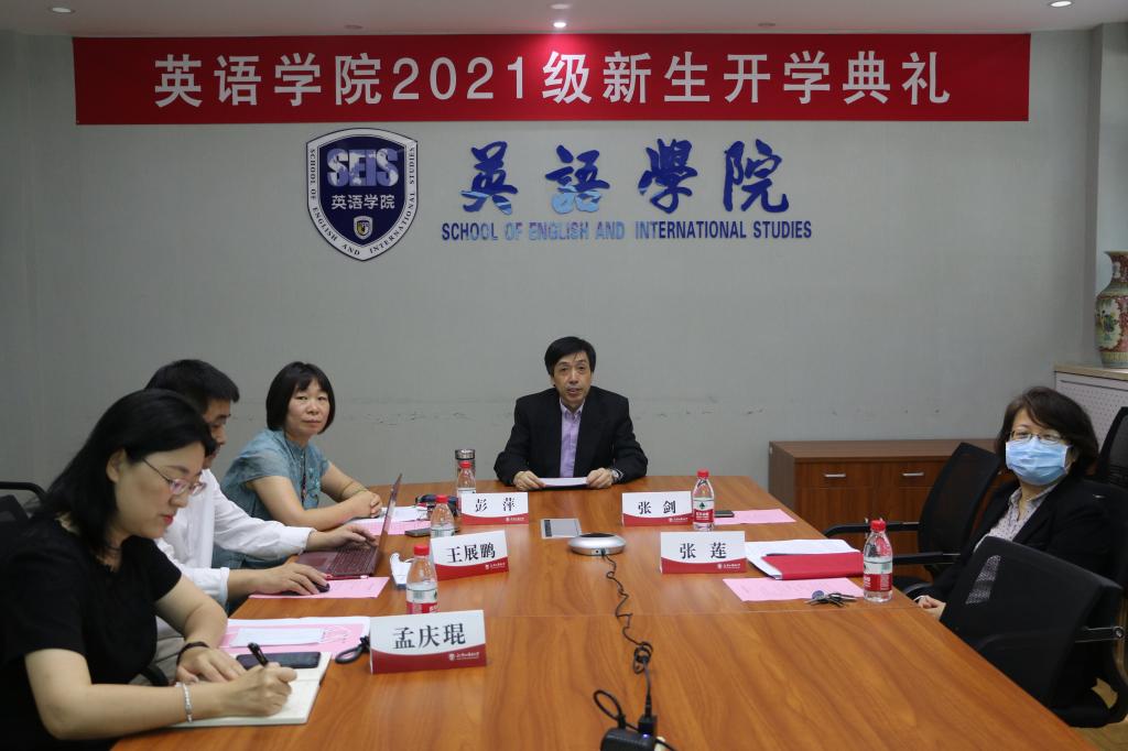9月8日上午,Beat365唯一官方网站通过线上、线下相结合的方式举行2021级新生开学典礼。Beat365唯一官方网站院长张剑、副院长张莲、副院长王展鹏、副院长彭萍、党总支副书记孟庆琨、各研究中心主任、本科生班主任、辅导员以及四百余名新生共同参加典礼。