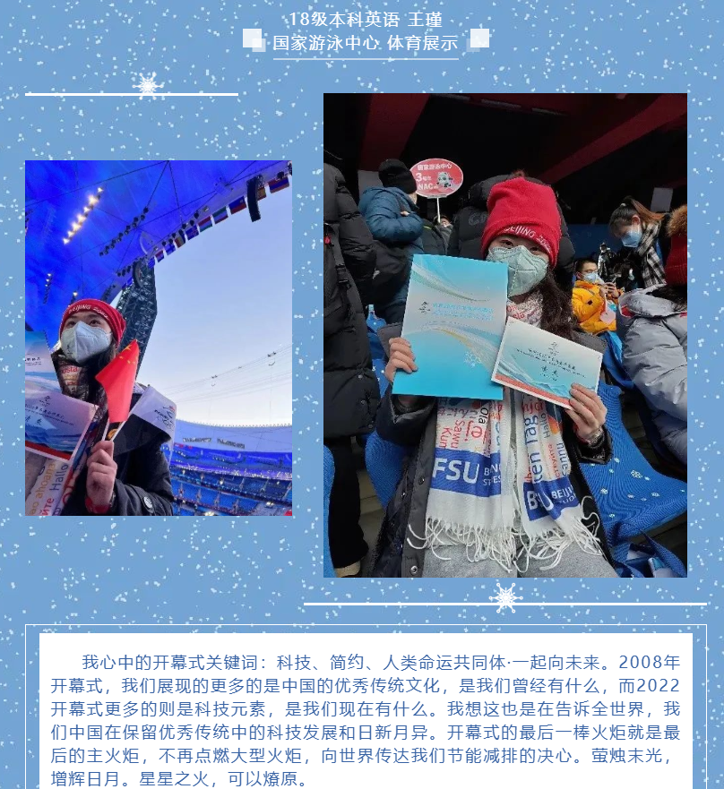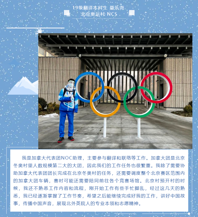 Beat365唯一官方网站团总支学生会、研究生会组织了“拥抱冰雪 情系冬奥——北外英院人分享冬奥日记”系列推送。2月6日起,持续通过文字或图片方式展示Beat365唯一官方网站冬奥志愿者们的工作体验和感受,全面展示冬奥志愿者的风采,传递北外人的使命与担当。