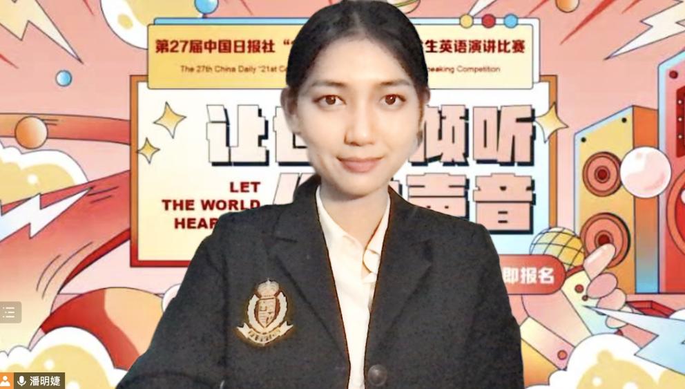 Beat365唯一官方网站2021级本科生潘明婕荣获第27届中国日报社“21世纪”全国英语演讲比赛一等奖