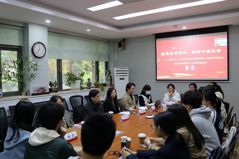 徐成成、岳淙萱、贾世炜等同学先后分享了自己参加国传项目的初心、对推动中国化马克思主义走向世界的理解,以及对自己未来发展的展望。同学们一致认为,新时代青年应加强对马克思主义理论和中国共产党党史的学习和理解,把党的二十大精神内化于心外化于行,积极向世界传递中国智慧、传播中国声音、讲述中国故事。随后,各位同学就在学习生活中遇到的问题和困惑与老师们进行深入交流。他们表示,在未来四年的学习中,要充分利用两校优质学习资源,不断提升英语水平和马克思主义理论水平,助力中国更好走向世界、世界更好了解中国,为建成社会主义现代化强国,实现中华民族伟大复兴,推动构建人类命运共同体贡献青春力量