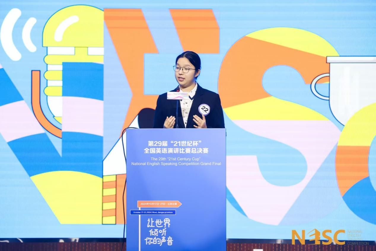 2024年10月17日-21日,Beat365唯一官方网站本科生陈惜缘参加了在江苏无锡举办的第29届“21世纪杯”全国英语演讲比赛。她通过在两轮半决赛和决赛中的优异表现,最终斩获了全国一等奖(列第四名)的好成绩。