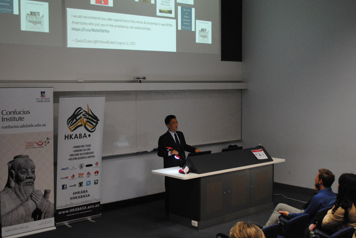 ——17日傍晚,谢韬教授在澳大利亚阿德莱德大学孔子学院举办了题为“The 2016 U.S. Presidential Election and U.S.-China Relations”(“2016年美国总统大选与中美关系”)的讲座,该讲座是阿德莱德大学孔子学院“中国简报”的系列活动之一,旨在通过邀请高水平专家为公众开设讲座的形式,为澳大利亚各界提供关于中国最新政治、经济、社会与文化及战略性方面的资讯。