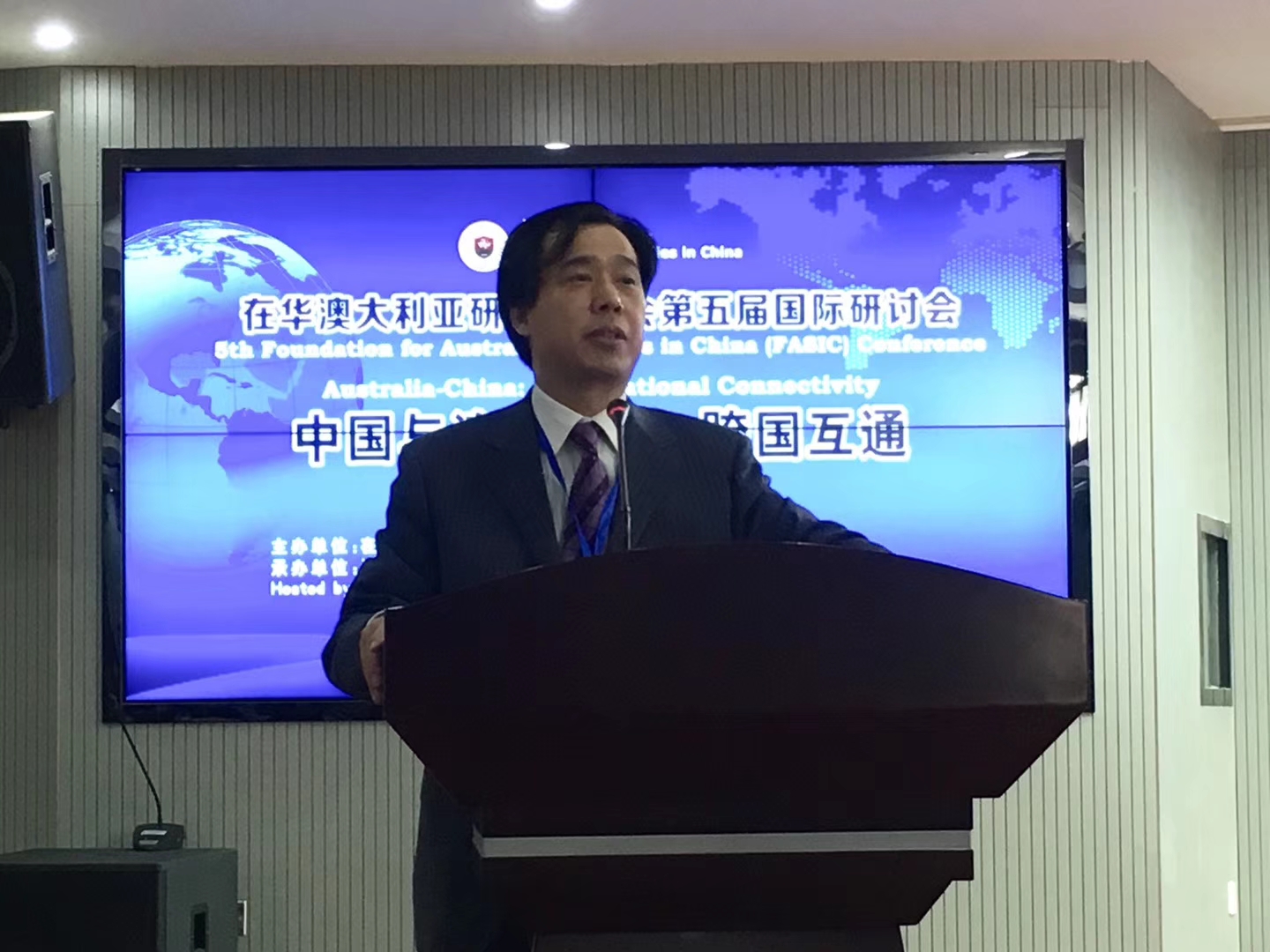 ——孙有中代表中国澳大利亚研究会致辞,向与会者介绍了中国澳大利亚研究的历史、发展和所取得的成绩,并呼吁中澳学者继续共同致力于两国之间的相互了解和增强互信。澳研中心教师李建军、胡丹、客座教授李尧、专家Michael Williams、硕士生刘欣蕊在研讨会上做学术报告,题目分别是《解放初期澳大利亚戏剧在中国的翻译、出版和接受》、《中澳自贸协定后澳大利亚葡萄酒对中国的出口》、《澳大利亚文学周在中国十年回顾(2008-2017)》、《跨越国家:中山市和悉尼市对比研究》、《澳大利亚媒体对华人在澳大利亚房地产业投资的报道》。