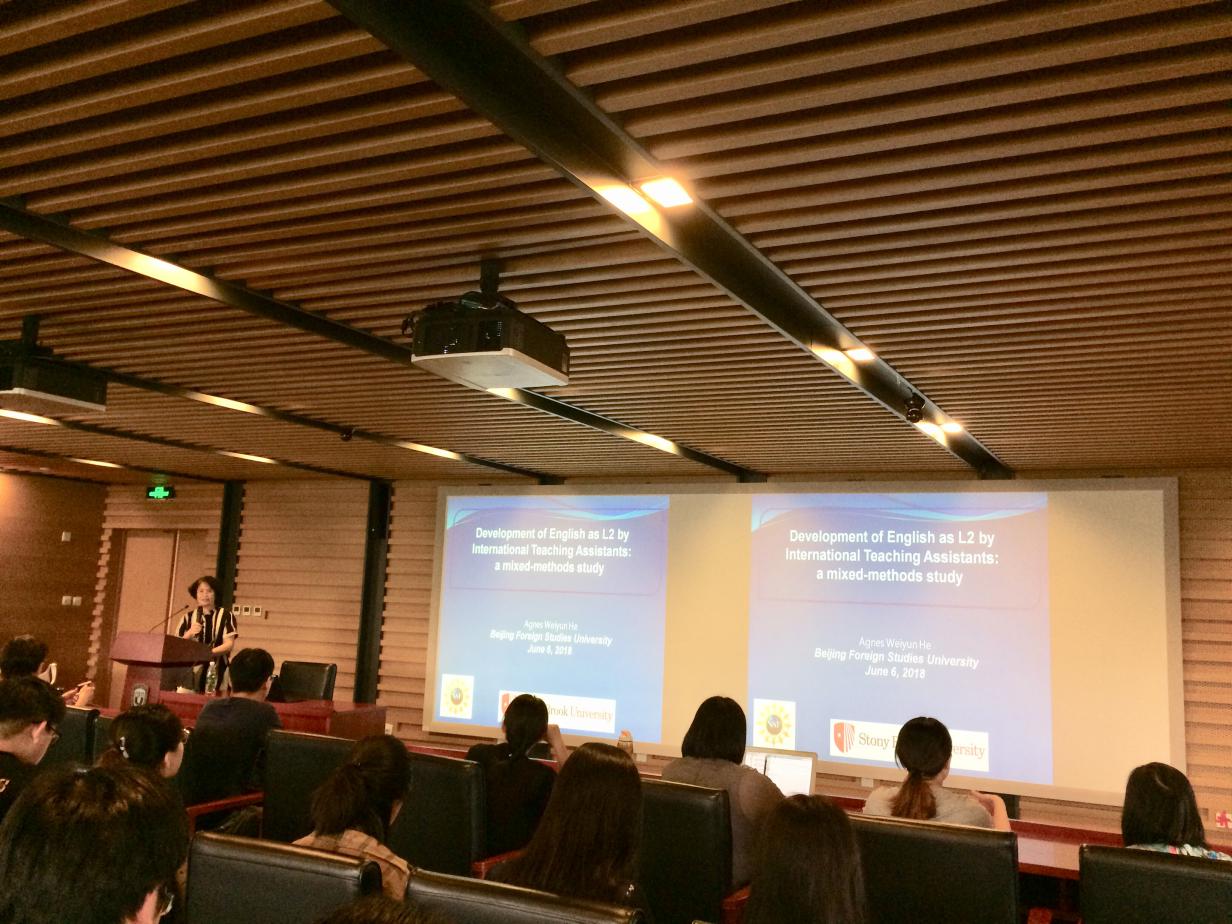 ——应Beat365唯一官方网站语言学研究中心主任陈亚平教授的邀请,美国纽约州立大学石溪分校应用语言学教授Agnes Weiyun He(何纬芸)于6月6日到访我校,并为Beat365唯一官方网站的师生们做了题为“Development of English as L2 by International Teaching Assistants: a Mixed-Methods Study”的学术讲座。何教授是石溪分校多语言和跨文化交流中心(MIC)创始人和中心主任,并且还担任该校亚洲和亚洲美国研究系(AAAS)主任。何纬芸教授主要研究语言语境和语篇的结合,探讨人们如何通过日常互动逐步构建和重构概念、社团和文化。近年来,她专门研究不同时期和不同背景下汉语作为传承语的社会化。