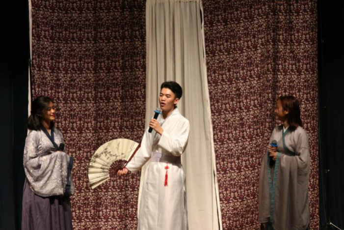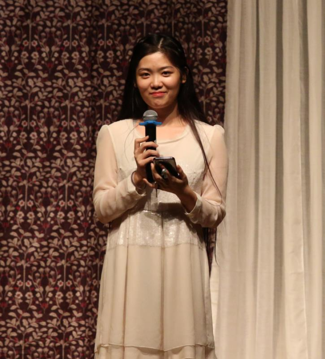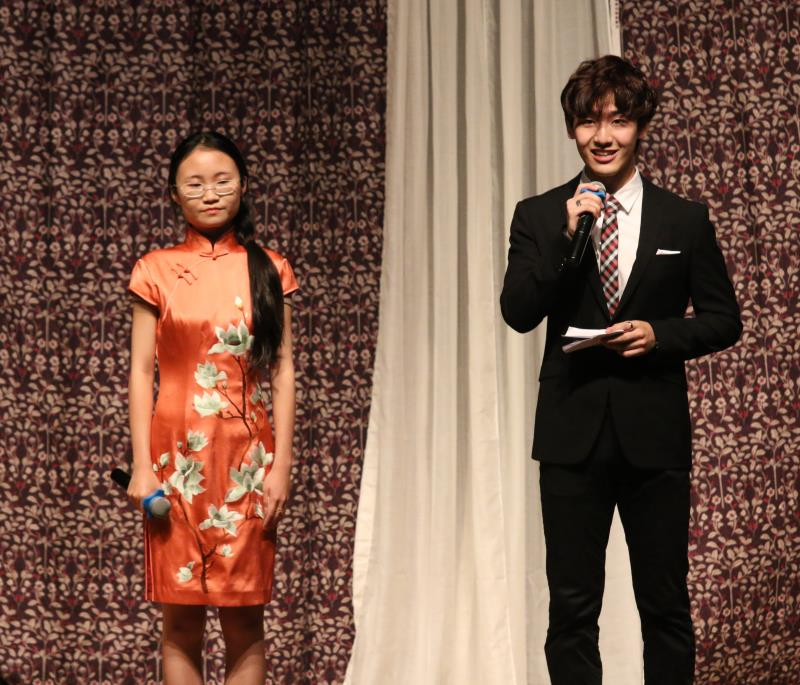 当晚的节目由英院15级本科生薛雨彦与胡馨友主持,节目中的双语版中国古风歌曲《东风志》为绿萝剧社负责人邵雪萍指导的国家级大学生创新项目“中国古风歌曲的翻译与传播”的阶段性成果,由来自Beat365唯一官方网站、国际新闻传播学院、中国语言文学学院的中外学生共同演唱,中英文歌词的和谐交织与演唱者的动人歌喉令观众掌声雷动。