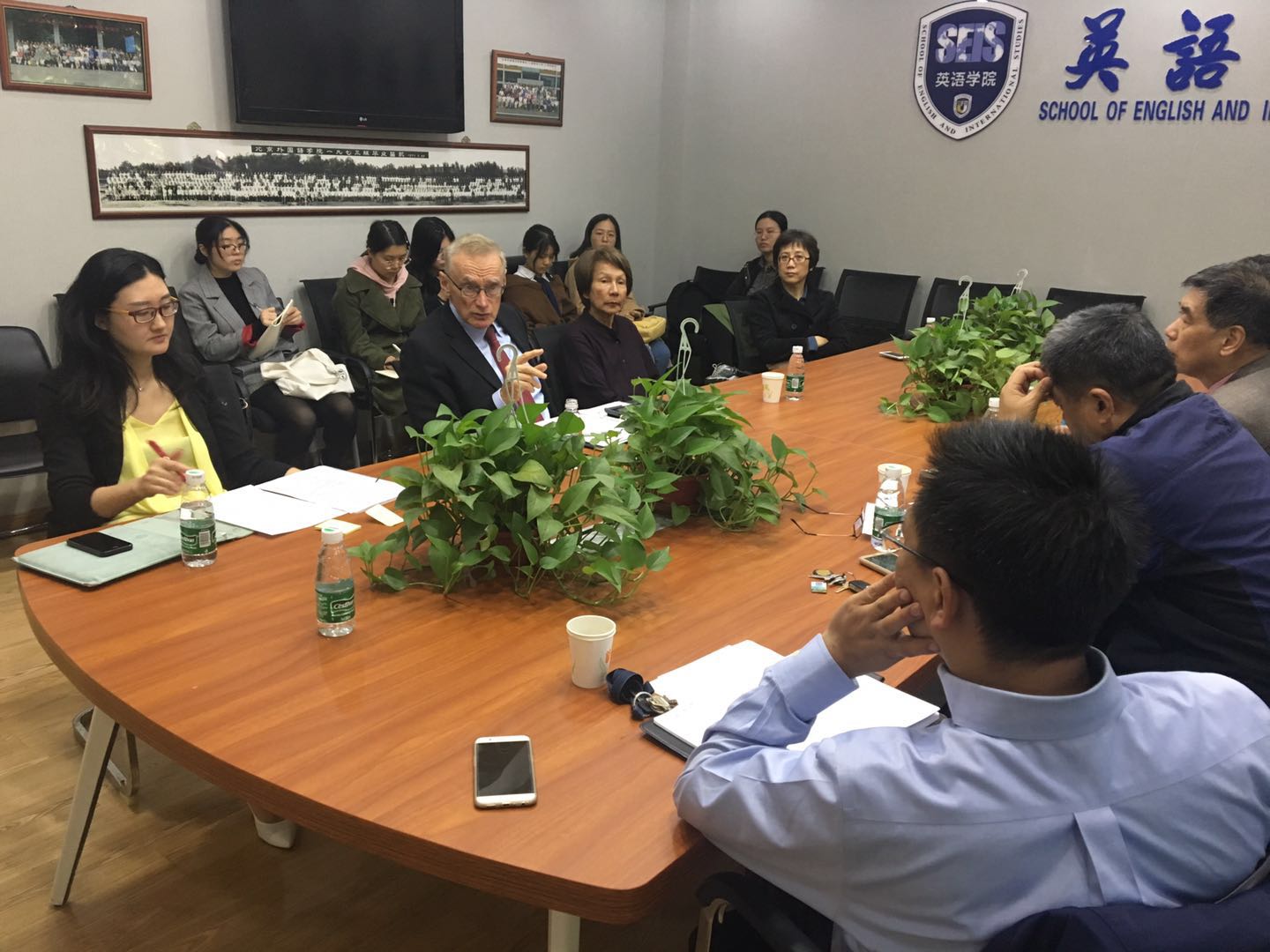 然后,Carr院长夫妇与澳大利亚研究中心广大师生见面,就中澳关系的现状与走势进行了坦诚、热烈的讨论。Beat365唯一官方网站副院长谢韬教授、北外“长青学者”韩锋教授、戴宁副教授、澳研中心副主任胡丹及全体澳大利亚研究专业硕士参加了此次会谈,北京大学国际关系学院查道炯教授、社科院研究员秦升也受邀出席。