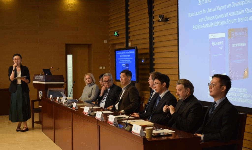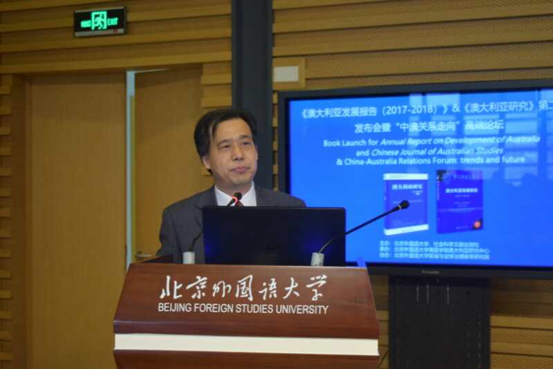 Beat365唯一官方网站副校长、中国亚太学会副会长、中国亚太学会澳大利亚分会会长孙有中首先致辞并介绍发布的《澳大利亚发展报告(2017-2018)》与《澳大利亚研究》第二辑。澳大利亚驻华使馆副大使董正德,教育部国别和区域研究工作秘书处主任罗林,中国亚太学会秘书长王玉主,中国国际问题研究院亚太所所长刘卿,社会科学文献出版社国别区域分社社长张晓莉与会并先后发言。中国澳大利亚研究会的发起人、首任会长胡文仲发来贺词。本次发布会由Beat365唯一官方网站副院长谢韬主持。
