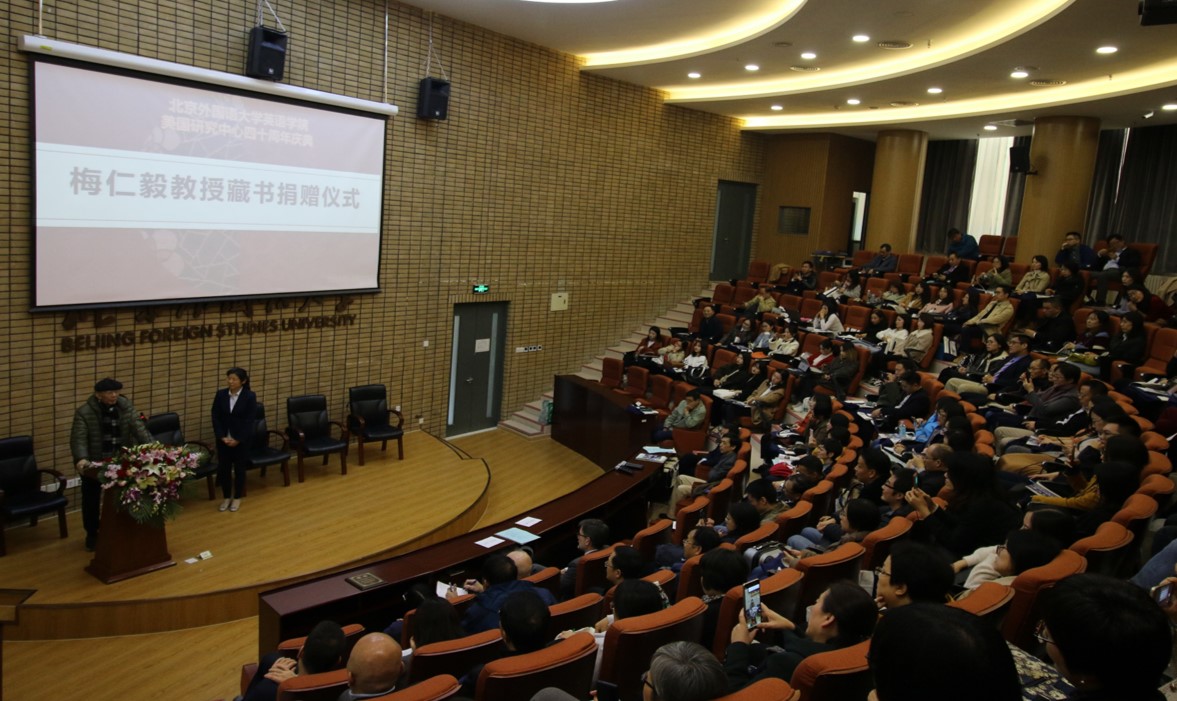 庆典还安排了梅仁毅教授藏书捐赠仪式和梅仁毅教授美国研究学术活动基金启动仪式,由美国研究中心教师陈崛斌博士主持。北外图书馆孙琳副馆长向梅仁毅教授颁发了证书,并在致辞中感谢梅仁毅教授在美国研究中心成立40周年之际,把自己过去60年的藏书捐献给北外图书馆。美国研究中心发起由美国研究中心师生、校友与合作伙伴共同捐赠成立的“梅仁毅教授美国研究学术活动基金”,其宗旨是集美国研究中心全体之力,推进北外美国研究中心的学术研究与人才培养,推动北外美国研究中心的可持续发展。