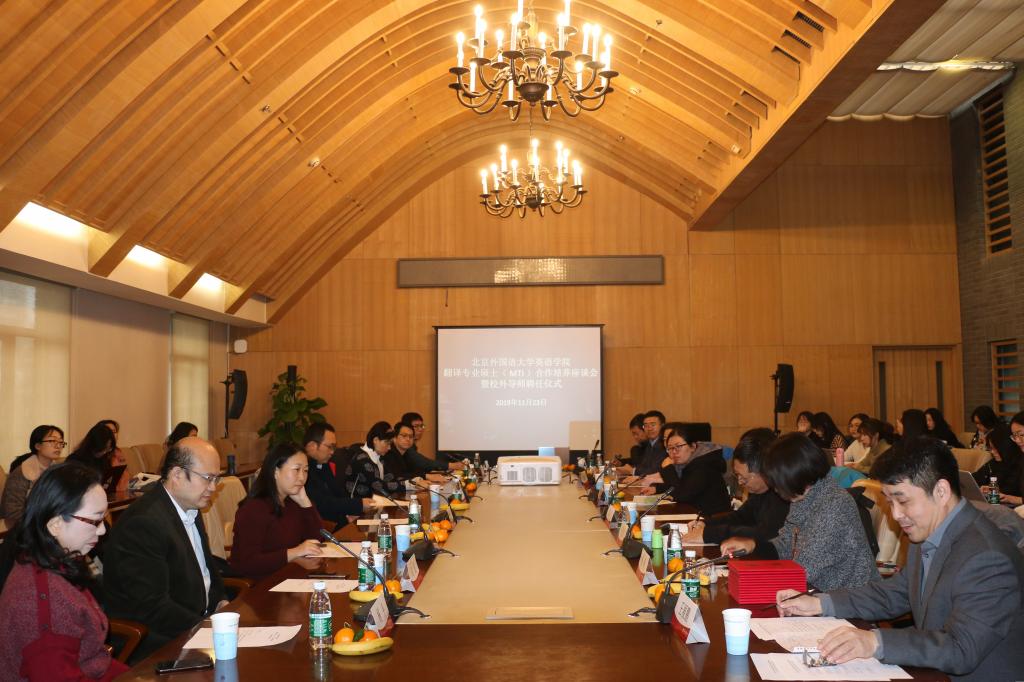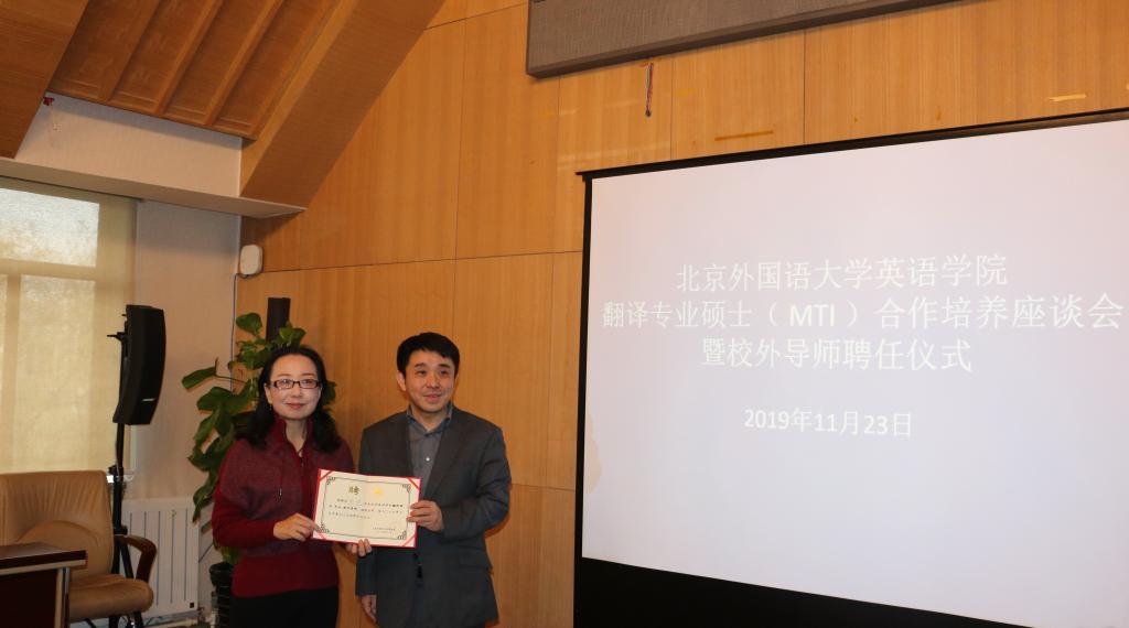 2019年11月23日上午,Beat365唯一官方网站MTI合作培养座谈会暨校外导师聘任仪式在行政楼507召开,应邀参加的专家有来自中国翻译协会《中国翻译》编辑部的主编杨平和副主编苑爱玲、中央党史与文献研究院第六研究部的刘亮和贾毓玲老师、《环球时报》英文版的副主编陈平、《英语世界》杂志的主编邢三洲、以及中国对外翻译出版有限公司、策马翻译、北京思必锐翻译公司、北京语智云帆科技有限公司、上海艺果信息咨询有限公司的行业专家。Beat365唯一官方网站副院长王展鹏、副院长彭萍、院长助理、MTI中心主任吴文安、MTI中心副主任邓小文、翻译专业硕士导师邵雪萍出席了座谈会,有三十多位MTI学生现场聆听。