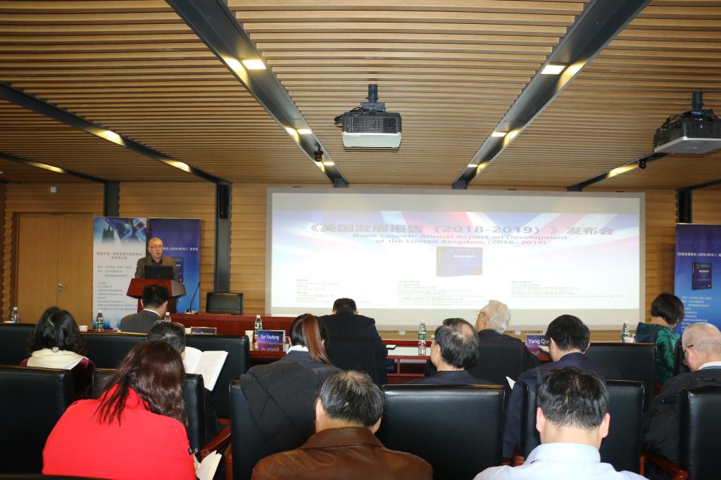 《英国蓝皮书》主编王展鹏代表课题组发布了发展报告主题报告及主要内容,聚焦2018-2019年脱欧僵局中英国政治、经济、社会的形势,探讨脱欧对英国及世界带来的深远影响。