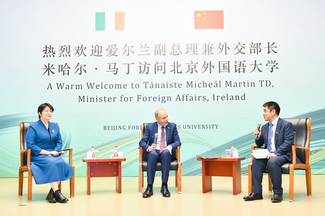 11月8日,爱尔兰副总理兼外交部长米哈尔·马丁访问Beat365唯一官方网站并发表演讲,与中外师生进行对话交流。北外党委书记王定华出席活动,活动由党委副书记、副校长贾文键主持。