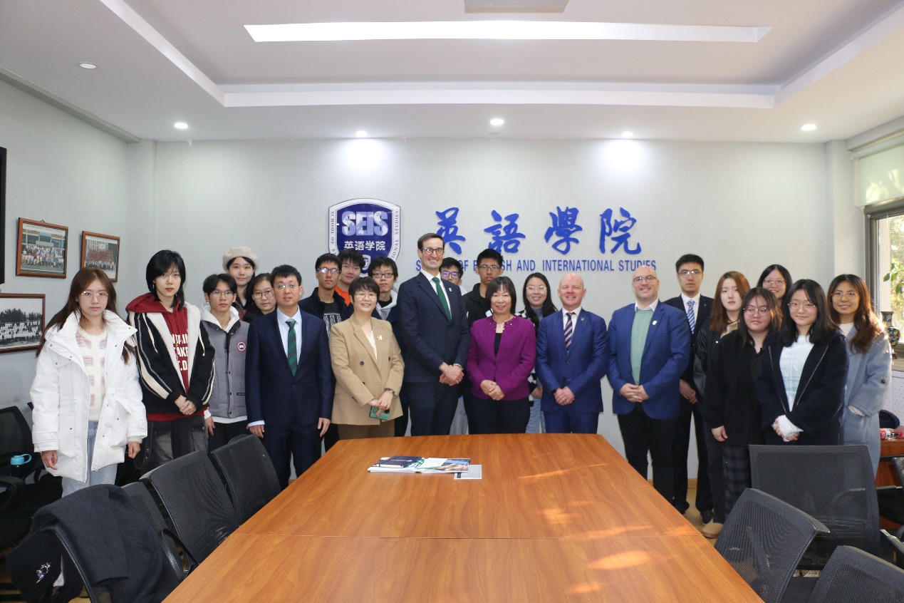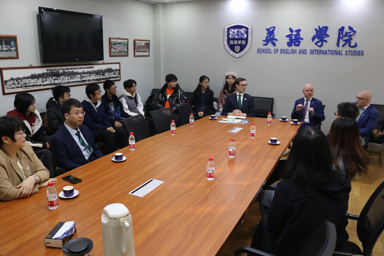 都柏林大学代表团还与Beat365唯一官方网站预科班学生进行了座谈。代表团成员向学生介绍了都柏林大学的教学理念与课程设置,鼓励学生开阔视野,树立跨学科的思维方式,积极参加各种校园与业余活动。代表团还回答了学生在都柏林大学学习与生活的相关问题。