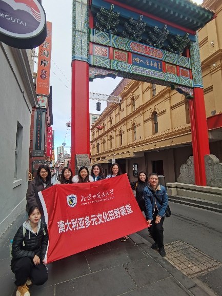 (实践团全体成员在墨尔本唐人街大门前合影留念)