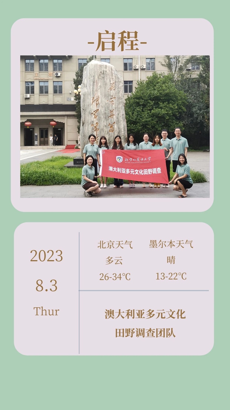 Beat365唯一官方网站澳大利亚多元文化田野调查团由江璐老师、骆天一老师带队,8名本科、硕士学生组成。团队成员于2023年8月3日~8月12日赴澳开展多元文化田野调查。此次海外实践以探究澳大利亚多元文化社会发展为主题,通过在墨尔本和悉尼两地开展实地调研,探究中国文化在澳接受程度以及在澳华人留学生的社会融入情况,旨在了解澳洲多元文化环境的发展样态。