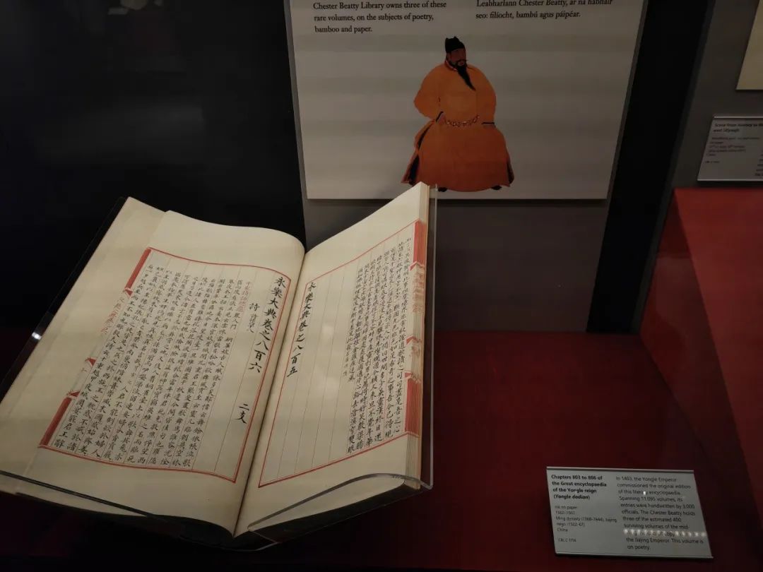 1月27日上午,实践团参观了都柏林切斯特·比蒂博物馆和爱尔兰文学博物馆。前者是私人博物馆,坐落于都柏林城堡边,藏品以古籍与手稿为主,年代最早可追溯至公元前2700年,涵盖莎草纸文章、古兰经、圣经、欧洲中世纪和文艺复兴时期的手抄本、细密画、佛教绘画、日本木版画、三本永乐大典、一幅宋徽宗真迹、龙袍、顺治的圣旨、红楼梦的插画本等来自欧洲、中东、北非和亚洲的手稿、珍本书籍和其他珍宝。其三楼是关于佛教、伊斯兰教和基督教的展览,布展极其用心,进门庄严肃穆,不同宗教不同色系和门头,一目了然。