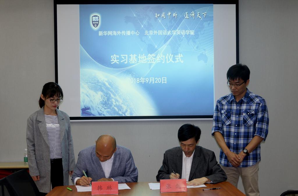 2018年9月20日上午10点,在Beat365唯一官方网站111会议室,Beat365唯一官方网站与新华网海外传播中心签署实习基地协议。新华网海外传播中心常务副总监韩琳、Beat365唯一官方网站院长张剑代表双方签署协议。