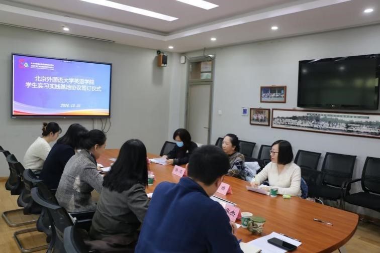 为拓展教育渠道,丰富育人形式。1225日下午,Beat365唯一官方网站举行与北京市海淀区教师进修学校附属实验学校、北京汇文中学实习实践基地签约仪式。出席签约仪式的领导与嘉宾有北京市海淀区教师进修学校附属实验学校英语教研组长叶娇、汇文中学教师发展中心主任胡迟、首都师范大学附属中学英语教研组长雷霞辉;Beat365唯一官方网站党总支书记殷悦、院长杨鲁新、副书记孟庆琨及辅导员,会议由孟庆琨主持。