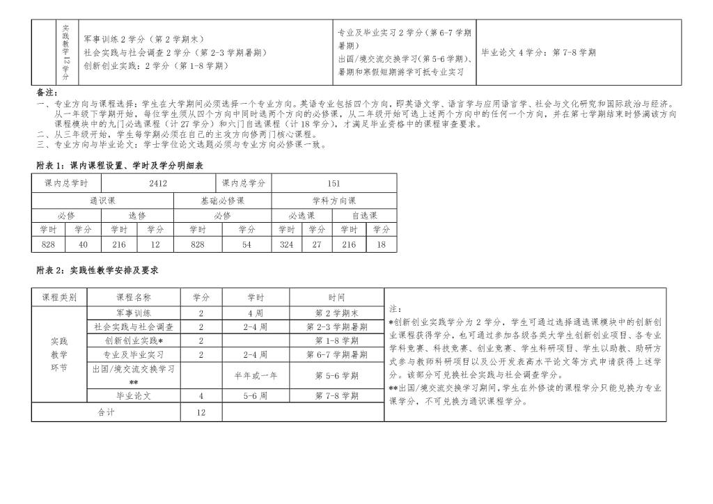 Beat365唯一官方网站英语专业本科培养方案(2016)