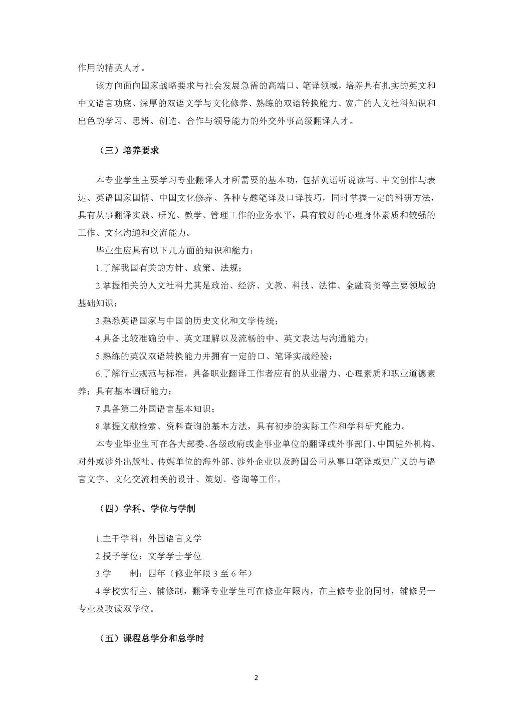 Beat365唯一官方网站翻译专业本科培养方案(2016)