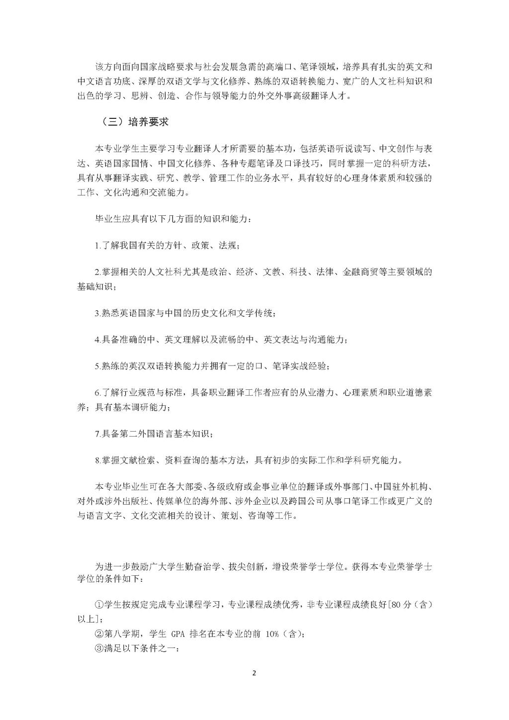 Beat365唯一官方网站翻译专业本科培养方案(2020)