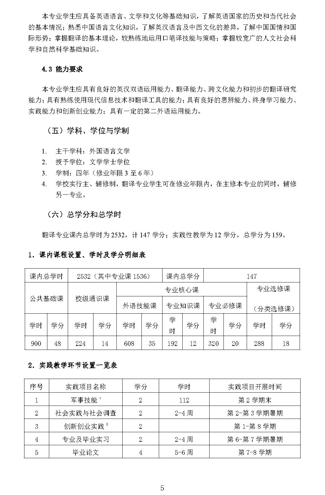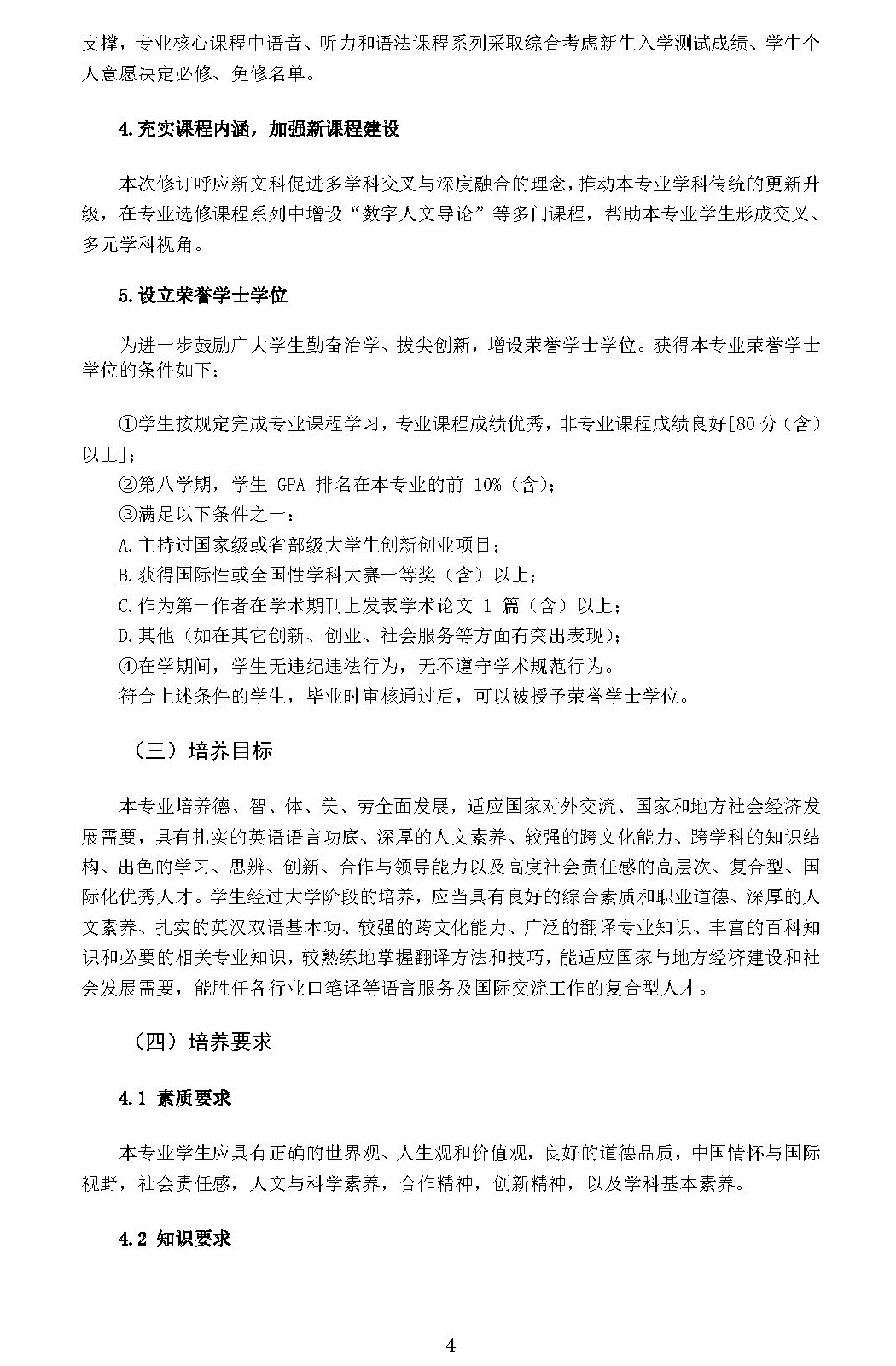 Beat365唯一官方网站翻译专业本科培养方案(2021)