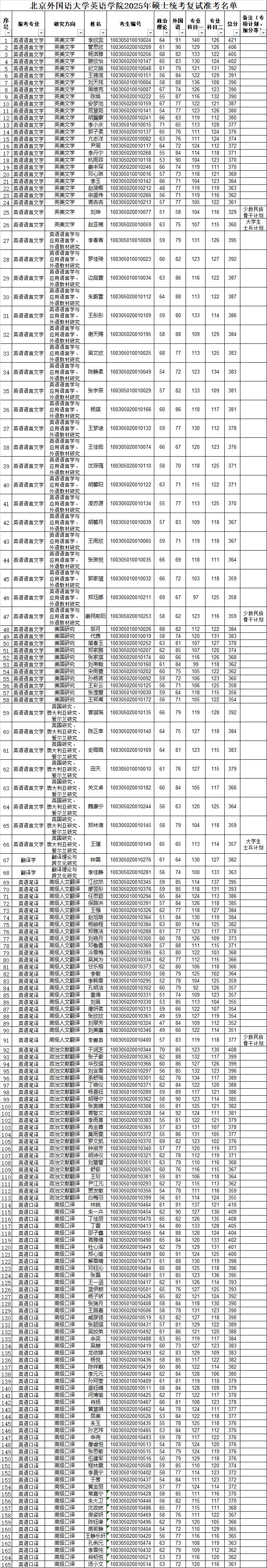 2025年硕士统考复试准考名单