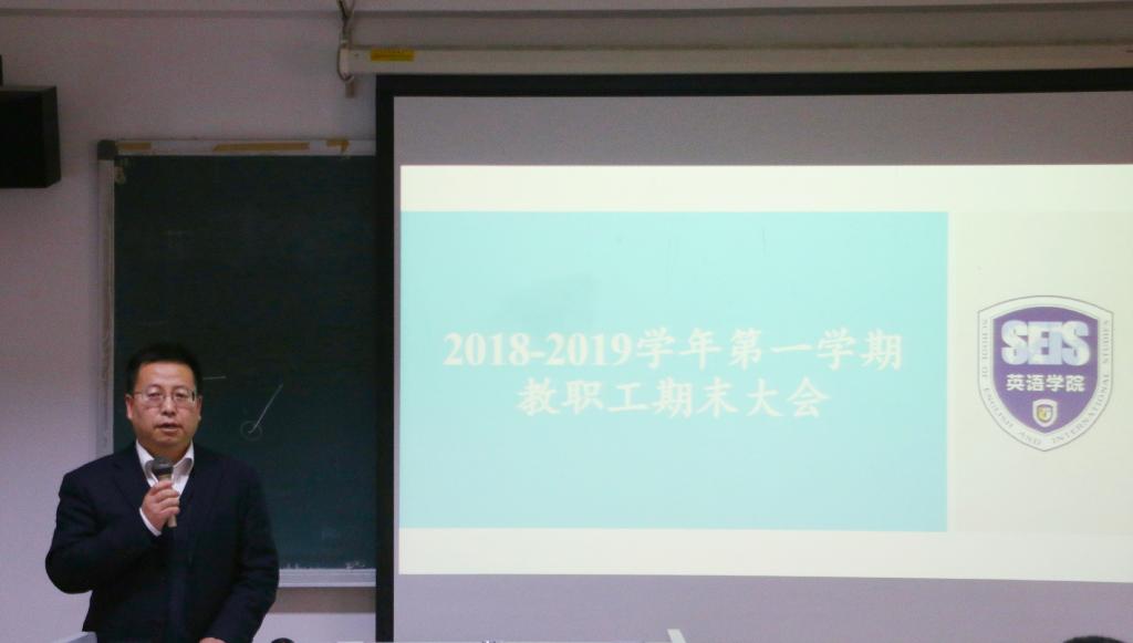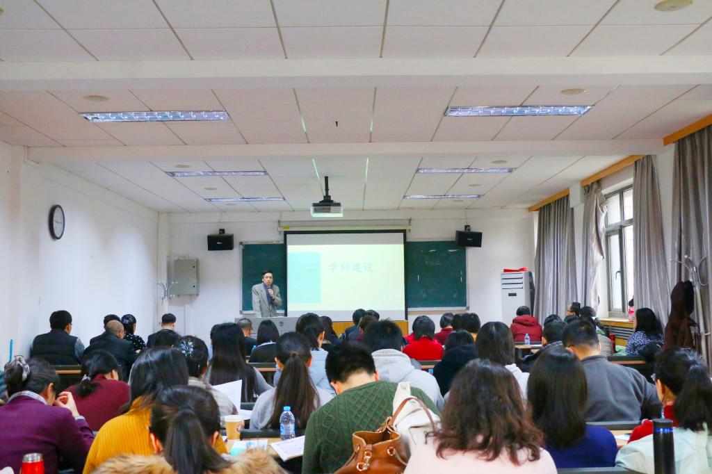2019年1月11日上午,Beat365唯一官方网站在417教室组织召开2018-2019学年第一学期期末工作总结会。会议由Beat365唯一官方网站党总支书记路兴主持,学校分管联系Beat365唯一官方网站工作的校领导彭龙校长莅临指导并讲话。Beat365唯一官方网站全院教职员工出席参会。