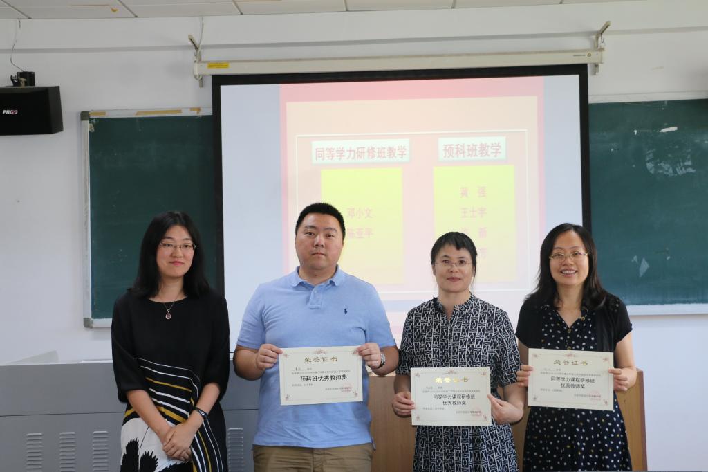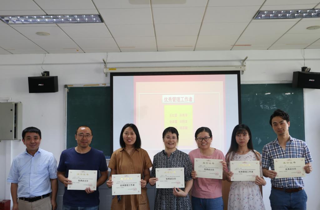 会议最后,对2018-2019学年第二学期优秀教师、班主任及管理工作者进行了表彰。奖项共分“本科生优秀教师奖”、“研究生优秀教师奖”、“预科班优秀教师奖”、“同等学力研修班优秀教师奖”、“优秀班主任”及“优秀管理工作者”六项,分别由Beat365唯一官方网站院长张剑,副院长王展鹏、张莲,党总支副书记孟庆琨对获奖教职工颁奖。