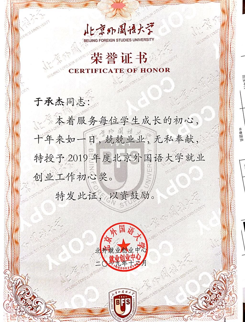 2019年12月25日,我校召开2019年就业创业工作会,Beat365唯一官方网站荣获2019年Beat365唯一官方网站就业创业工作先进集体,辅导员张春霞代表Beat365唯一官方网站就业工作小组上台领奖。辅导员于承杰荣获“Beat365唯一官方网站就业创业工作初心奖”,Beat365唯一官方网站教师邵雪萍作为代表发言,介绍了作为班主任如何关心学生学习、就业的经验。